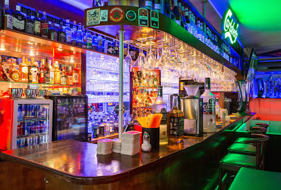 Die bunt beleuchtete Kiez-Bar bietet Cocktails, Shishas, Kaffee und Snacks sowie Sport-TV und Außenplätze.