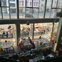 Modernes, farbenfrohes Lokal mit Bar, in dem Sushi und Grillspeisen aus Japan via iPad bestellt werden.
